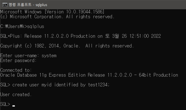 create user [로그인 계정명] identified by [로그인 비밀번호]