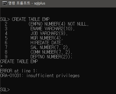 sqlplus 명령어를 입력하여 오라클을 실행해줍니다.