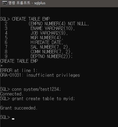 계정 생성도 완료했고 해당 계정의 테이블 스페이스도 확보하였으니