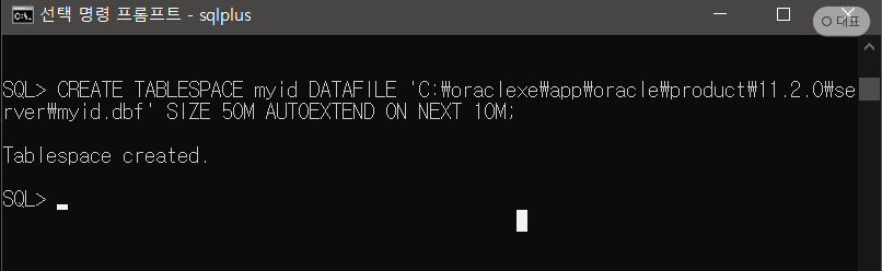CREATE TABLESPACE [명칭] DATAFILE [파일경로] SIZE [사이즈] AUTOEXTEND ON NEXT [늘릴 사이즈];
