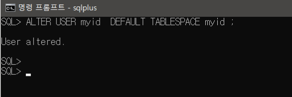 ALTER USER [계정명] DEFAULT TABLESPACE [테이블 스페이스 명칭]