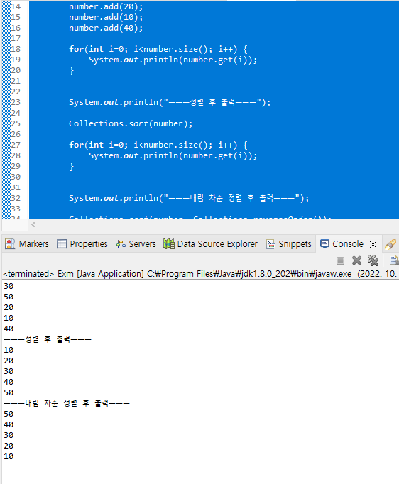 내림차순으로 할 수 있으며, Collections 입력 후 .(콤마)를 누르면