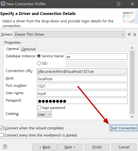 이제 오라클 접속 정보를 입력해야 하는데요.