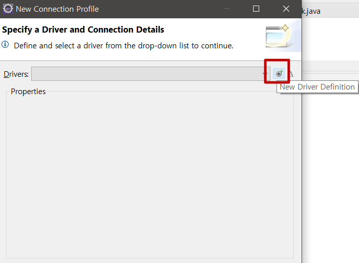 우측에 보시면 New Driver Definition 버튼을 찾아 클릭합니다.