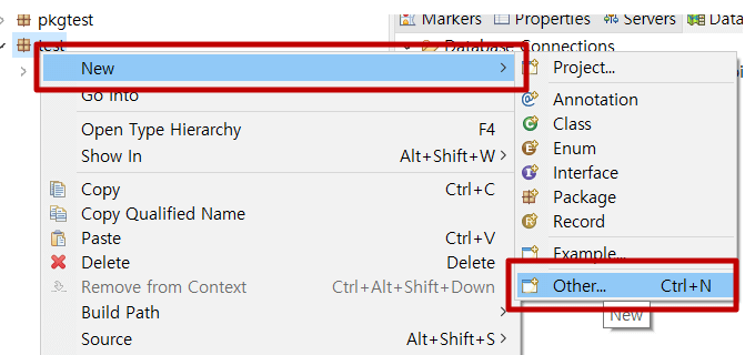 자신의 프로젝트 내 패키지에서 오른쪽 마우스 -> Other를 클릭합니다.