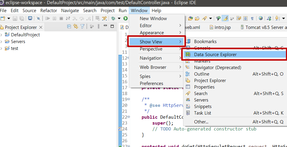 그럼 하단에 Data Source Exploere라는 항목이 보이게 됩니다.