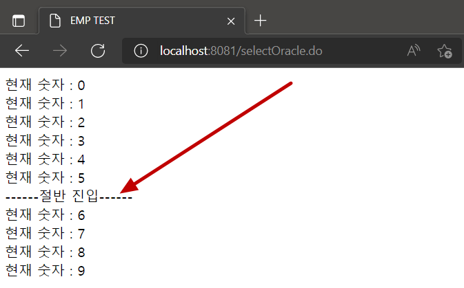 절반 진입이라는 부분은 출력 태그로 표현하면