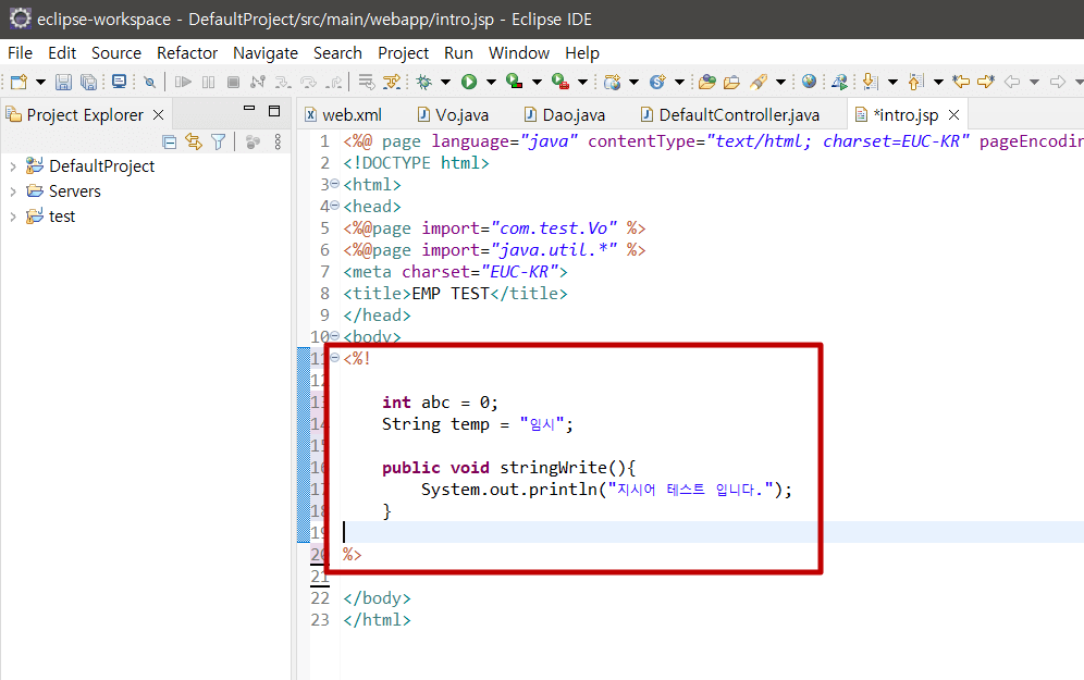 위와 같이 <%! %> 안에 Java 소스코드 구성이 가능합니다.