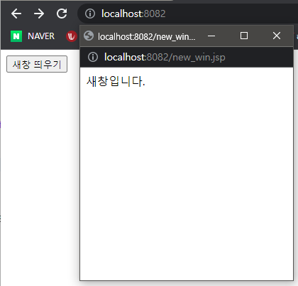 - new_win.jsp는 같은 경로에 있는 jsp이며 새창 띄우기 버튼을 클릭하면 위의 페이지로 이동합니다.