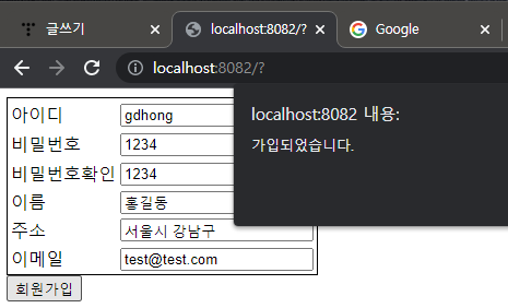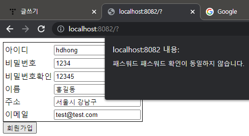 회원가입 시 값이 올바른지 체크하는 유효성 검사 예제를 알아보겠습니다.