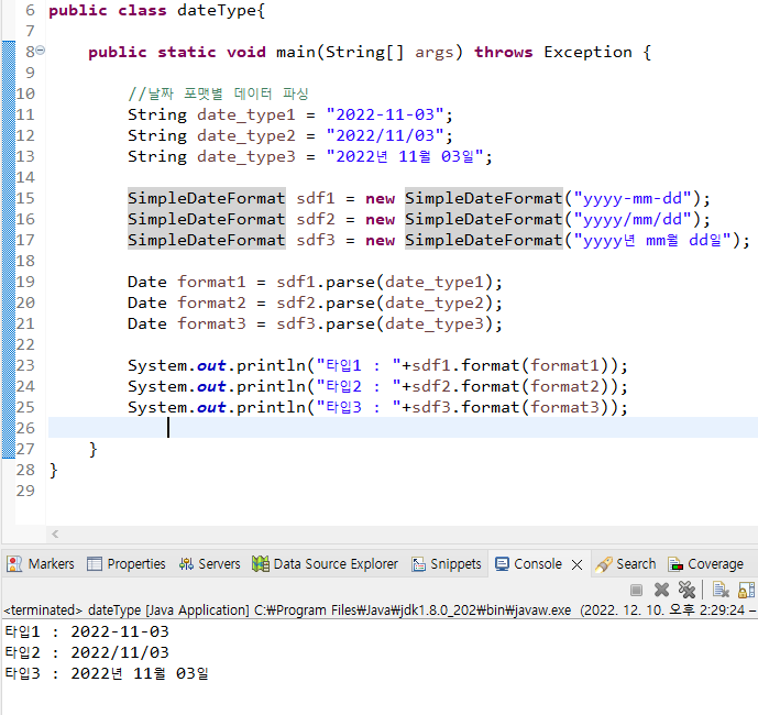 주목할 점은 String 타입의 데이터가 SimpleDateFormat 타입과 맞아야