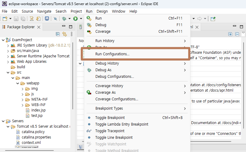 Run -> Run Configurations 메뉴를 눌러줍니다.