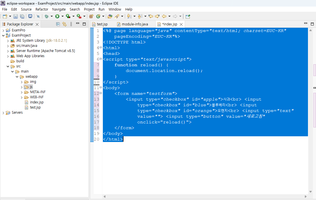 소스코드를 전제 블록해 준 다음에