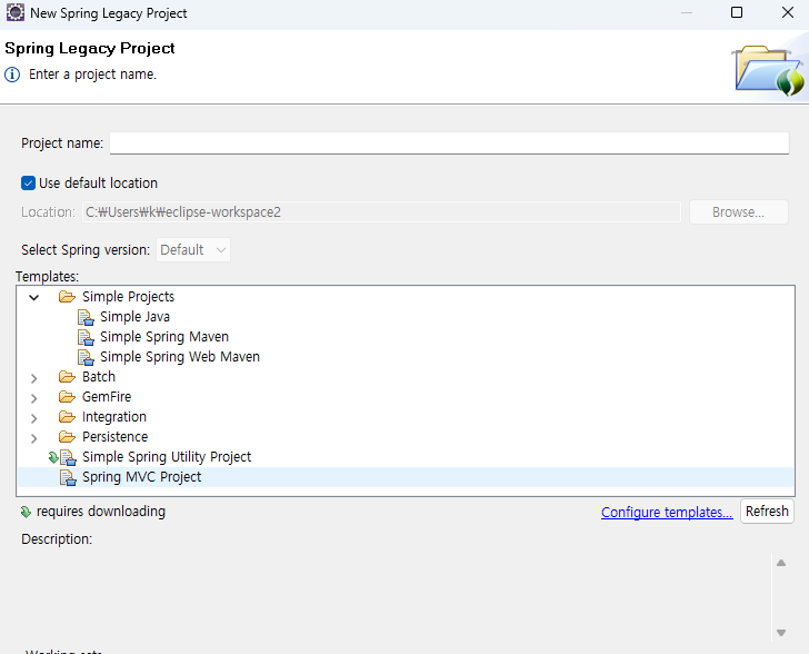 스프링(STS) Spring Legacy Project에서 Spring MVC Project가 안보일 때