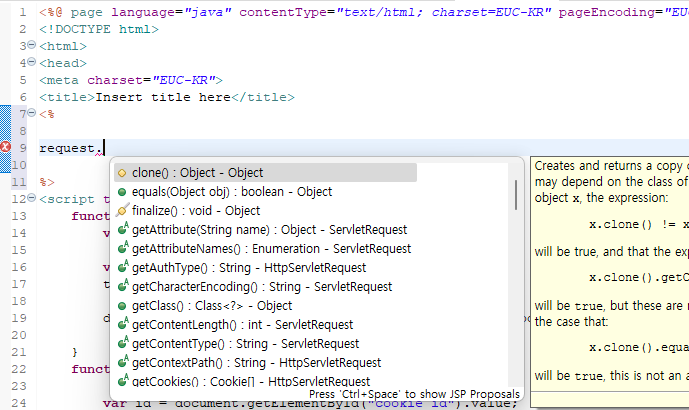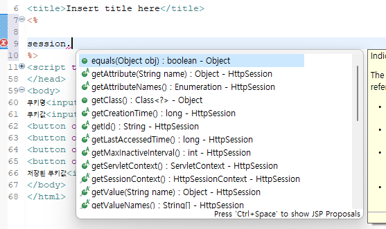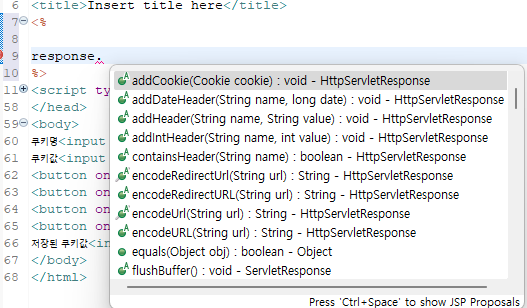 위와 같이 JSP에서 <% %> 안에 request 기능을 사용할 수 있습니다.