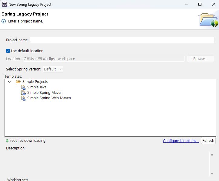 스프링(STS) Spring Legacy Project에서 Spring MVC Project가 안보일 때