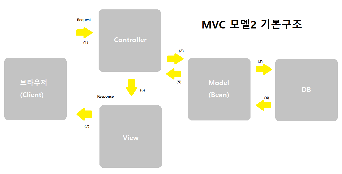 위의 이미지는 MVC 모델 2의 기본 구조입니다.