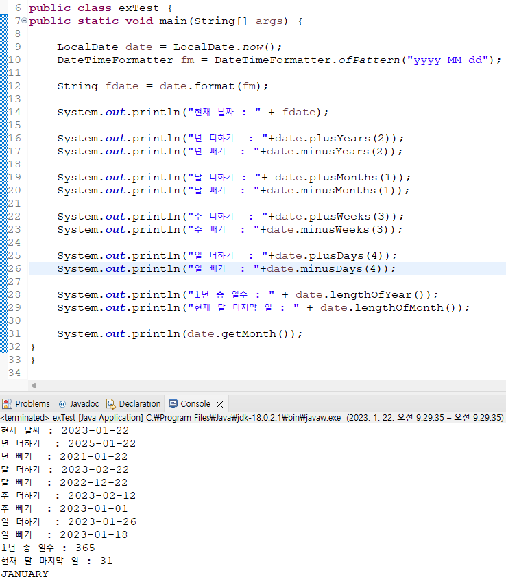 System.out.println("일 빼기 : "+date.minusDays(4));