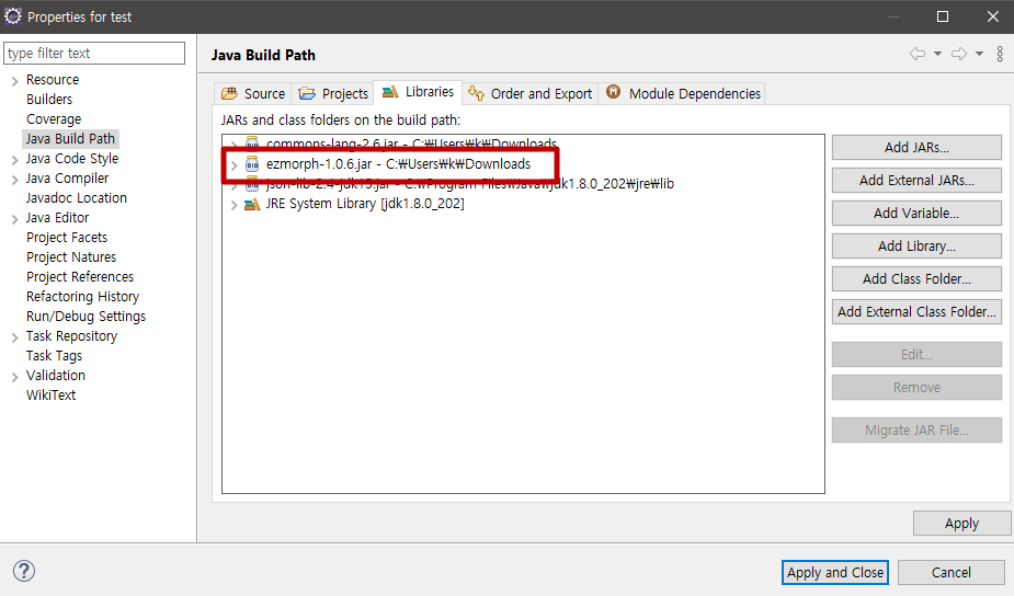 그리고 해당 Morpher 라이브러리를 에러가 난 프로젝트에 추가해 주시면 됩니다.