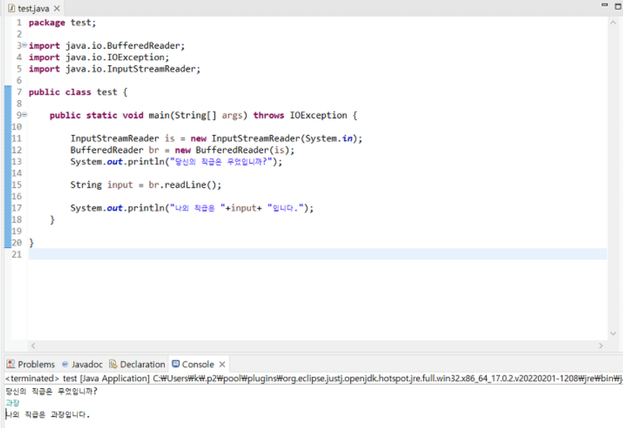 BufferedReader, InputStreamReader를 이용하여 예제를 만들어 보겠습니다.
