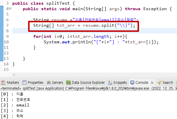 이 split 기능은 특수문자 같은 경우 동작이 안 되는 경우가 있습니다.