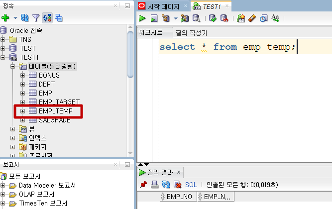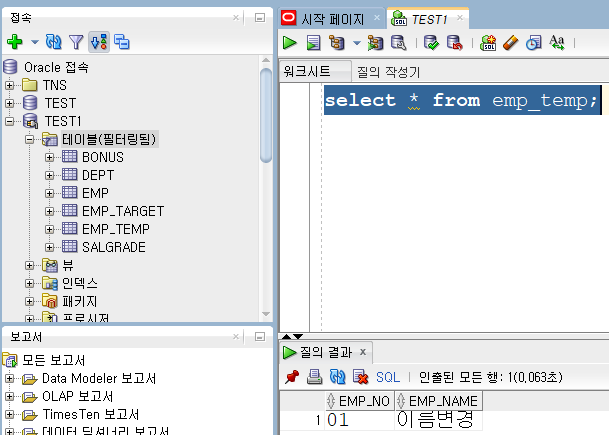 create문이 정상적으로 작동된 모습입니다.