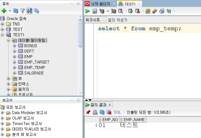 String sql = "insert into emp_temp (emp_no, emp_name) values('01', '테스트')";